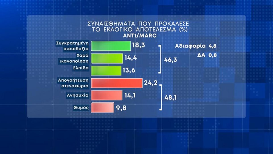 Δημοσκόπηση Marc: Ικανοποιημένος από το αποτέλεσμα των εκλογών δηλώνει ο ένας στους δύο