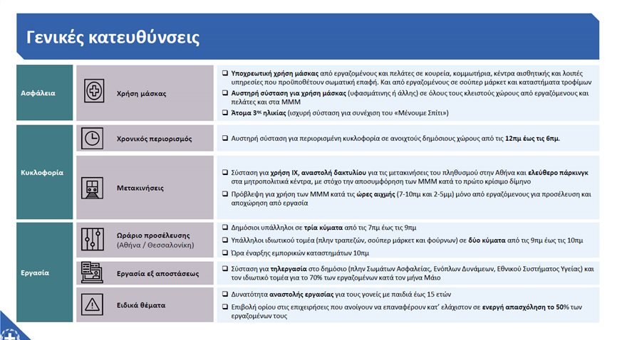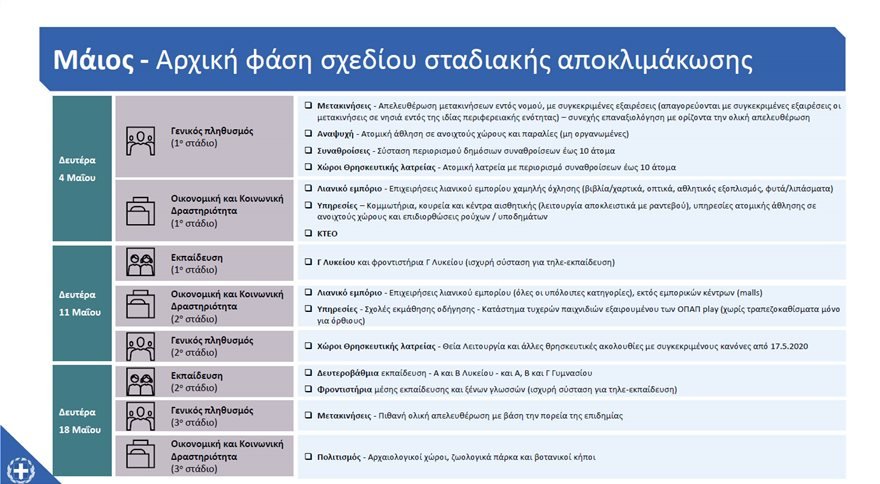 Η κυβέρνηση ανακοίνωσε σήμερα αναλυτικά το σχέδιο της για την άρση των περιοριστικών μέτρων από την πανδημία του κορωνοϊού.