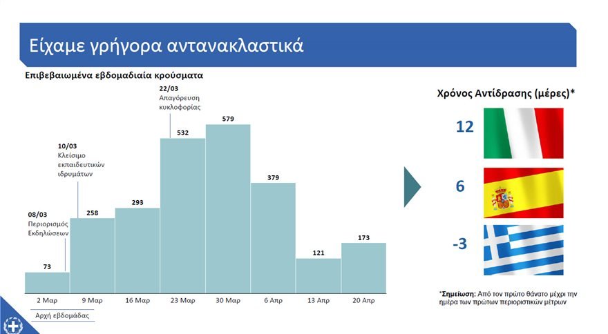 Βήμα - βήμα το σχέδιο για την σταδιακή επιστροφή στην κανονικότητα ανακοίνωσαν οι έξι υφυπουργοί της κυβέρνησης που πήραν τη σκυτάλη μετά το διάγγελμα του πρωθυπουργού Κυριάκου Μητσοτάκη. Το σχέδιο «Γέφυρα Ασφαλείας» αφορά όλα τα βήματα προς την αποκλιμάκωση των περιοριστικών μέτρων, αλλά με το σύνθημα «Μένουμε Ασφαλείς» να αποτελεί το βασικό άξονα του σχεδιασμού και της επανεκτίμησης των δεδομένων από την ερχόμενη Δευτέρα, οπότε και τίθεται σε εφαρμογή. Οπως επισήμανε ο πρωθυπουργός Κυριάκος Μητσοτάκης τα μέτρα πέτυχαν χάρη στη συνεργασία όλων και η Ελλάδα έγινε παράδειγμα για όλο τον κόσμο, ωστόσο το αποτέλεσμα είναι εύθραυστο.