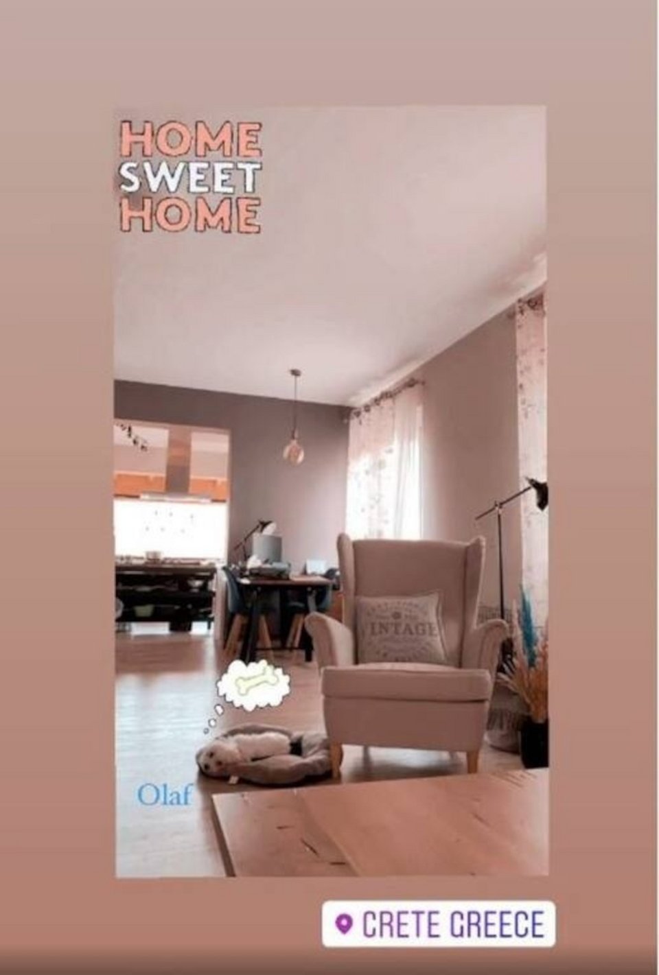 Όπως μαρτυρούν οι σχετικές αναρτήσεις της ηθοποιού, ο κήπος τους διαθέτει μπάρμπεκιου και πολλά λουλούδια, ενώ ιδιαίτερα καλαίσθητο είναι και το εσωτερικό του σπιτιού, και συγκεκριμένα το σαλόνι, που έχει μοντέρνα διακόσμηση στις αποχρώσεις του ξύλου.