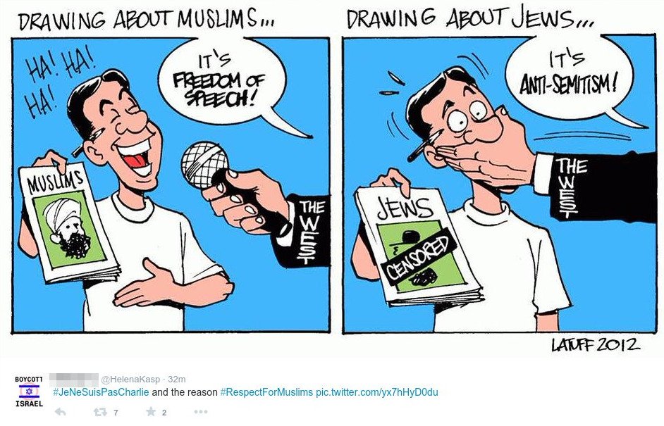 Αλλοι χρήστες επικρίνουν τη Γαλλία σημειώνοντας ότι μιλούν για ελευθερία του λόγου στη χώρα που απαγόρευσαν τη μαντίλα ή που συνέλαβαν όσους πραγματοποιούσαν διαδηλώσεις αλληλεγγύης στην Παλαιστίνη.