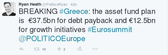 Ολα είναι έτοιμα για να πάνε στο πρόγραμμα του ESM για την Ελλάδα με σοβαρές μεταρρυθμίσεις και οικονομική ενίσχυση», τουίταρε πριν λίγο ο πρόεδρος του Ευρωπαϊκού Συμβουλίου Ντόναλντ Τουσκ.