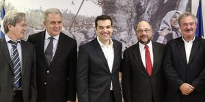 ΠΟΛΙΤΙΚΗ 03/11/2015 08:06 Τσίπρας, Μοσκοβισί, Σουλτς: Μέτρα και προσφυγικό στο τραπέζι -Οσα θα συζητηθούν