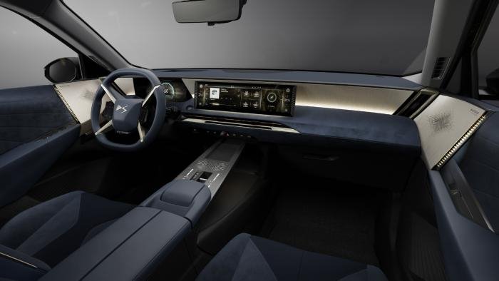 Οι μεγάλες αυτές επιφάνειες καλύπτονται από μαλακά πολυτελή υλικά και αναδεικνύονται με αντιθέσεις στις ραφές ή ανάγλυφα μοτίβα, ενώ μπορούν να συνδυαστούν με διακοσμητικά από βουρτσισμένο αλουμίνιο ή πραγματικό ξύλο, ανάλογα με την επιλεγμένη έκδοση. Τα χαρακτηριστικά της DS – τα ανάγλυφα ένθετα «Clous de Paris», οι μαργαριταρένιες ραφές Pearl Stitching και τα καθίσματα με δέρμα Nappa σε μοτίβο μπρασελέ – προσθέτουν στο εσωτερικό. Ο ψηφιακός πίνακας οργάνων 10 ιντσών και η κεντρική οθόνη αφής 16 ιντσών ενσωματώνονται με κομψό τρόπο στο ταμπλό, ενώ το τιμόνι σε σχήμα X προσφέρει στον οδηγό νέες ζώνες λαβής.