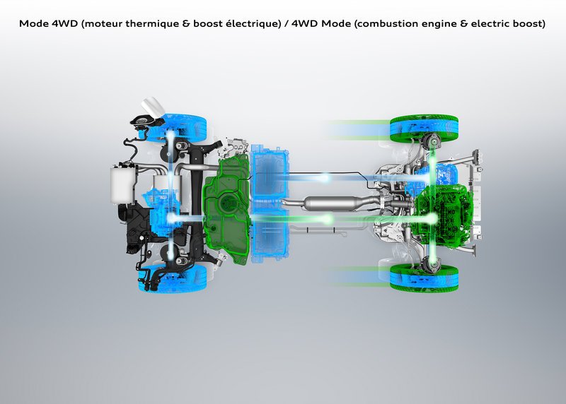 Το σύστημα HYBRID4 είναι διαθέσιμο μόνο σε έκδοση GT με αποκλειστική εσωτερική επένδυση Alcantara (χρώματοςGreval Gray) και διακοσμητικά στοιχεία πραγματικού ξύλου βελανιδιάς «Grey Oak».