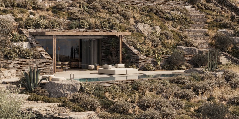 «Το έργο Emerging Landscape αναπτύσσεται με άξονα τη μορφολογία του εδάφους, την υλικότητα του τόπου και τα “προϋπάρχοντα” στοιχεία του κυκλαδίτικου τοπίου, φυσικά και ανθρωπογενή. Το έργο αποτελεί ένα παράδειγμα βιώσιμης αρχιτεκτονικής και μίας προσέγγισης στον τόπο με σεβασμό, προκειμένου να ενταχθεί αρμονικά στο τοπίο», εξηγεί η αρχιτεκτονική ομάδα του γραφείου Κordas Architects.