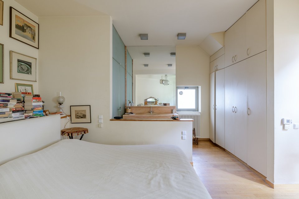 Ακόμη πιο πάνω και ερχόμαστε στη σοφίτα – γραφείο. Ειδικά διαμορφωμένος ο χώρος για να ξεκινήσουμε ή να ολοκληρώσουμε μια δημιουργική και busy μέρα, εξασφαλίζοντας μας ησυχία και ιδιωτικότητα. Extra credit: Η θέα στον Λυκαβηττό και η έξοδος προς τη χαριτωμένη βεράντα. Στο κατώτερο επίπεδο υπάρχει ένα laundry room και ένα ακόμη μπάνιο.