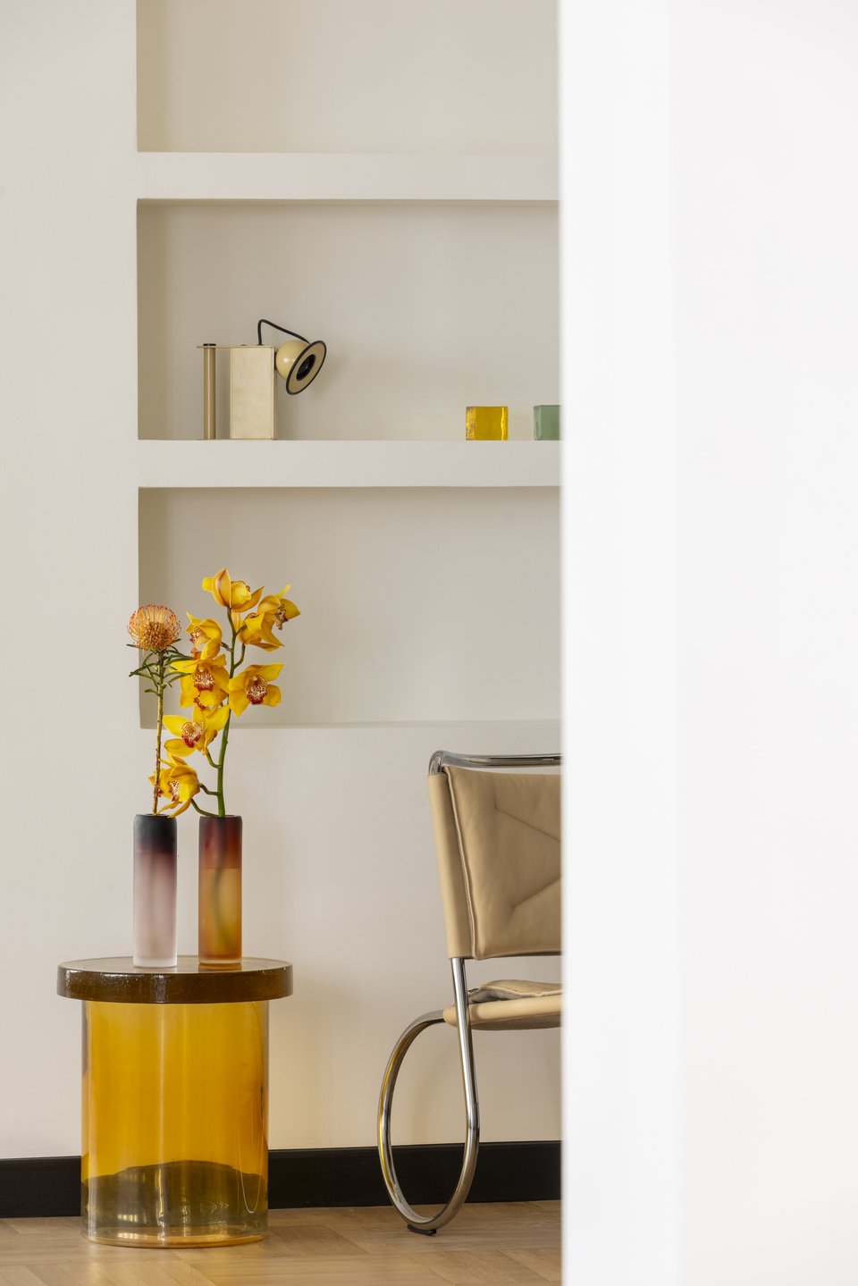 Προς το πίσω μέρος του καθιστικού, διατηρήθηκε ένα επιπλέον δωμάτιο ως ευέλικτος χώρος που μπορεί να υποστηρίξει μεταβαλλόμενες ανάγκες, από ένα ήσυχο γραφείο σε ένα δωμάτιο επισκεπτών όταν απαιτείται.