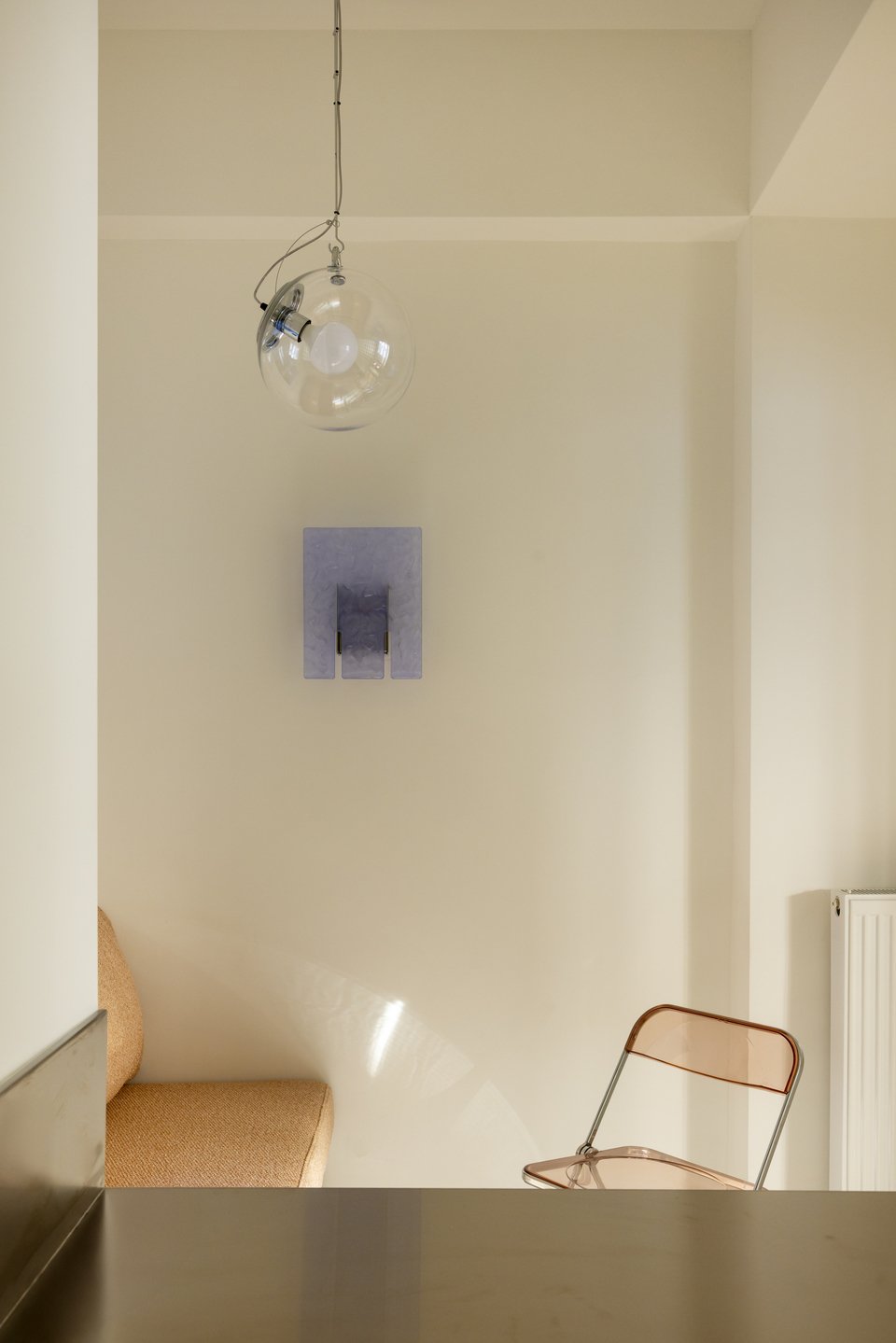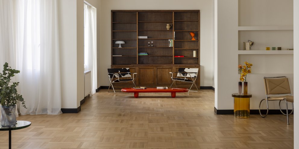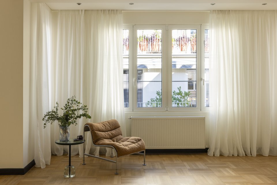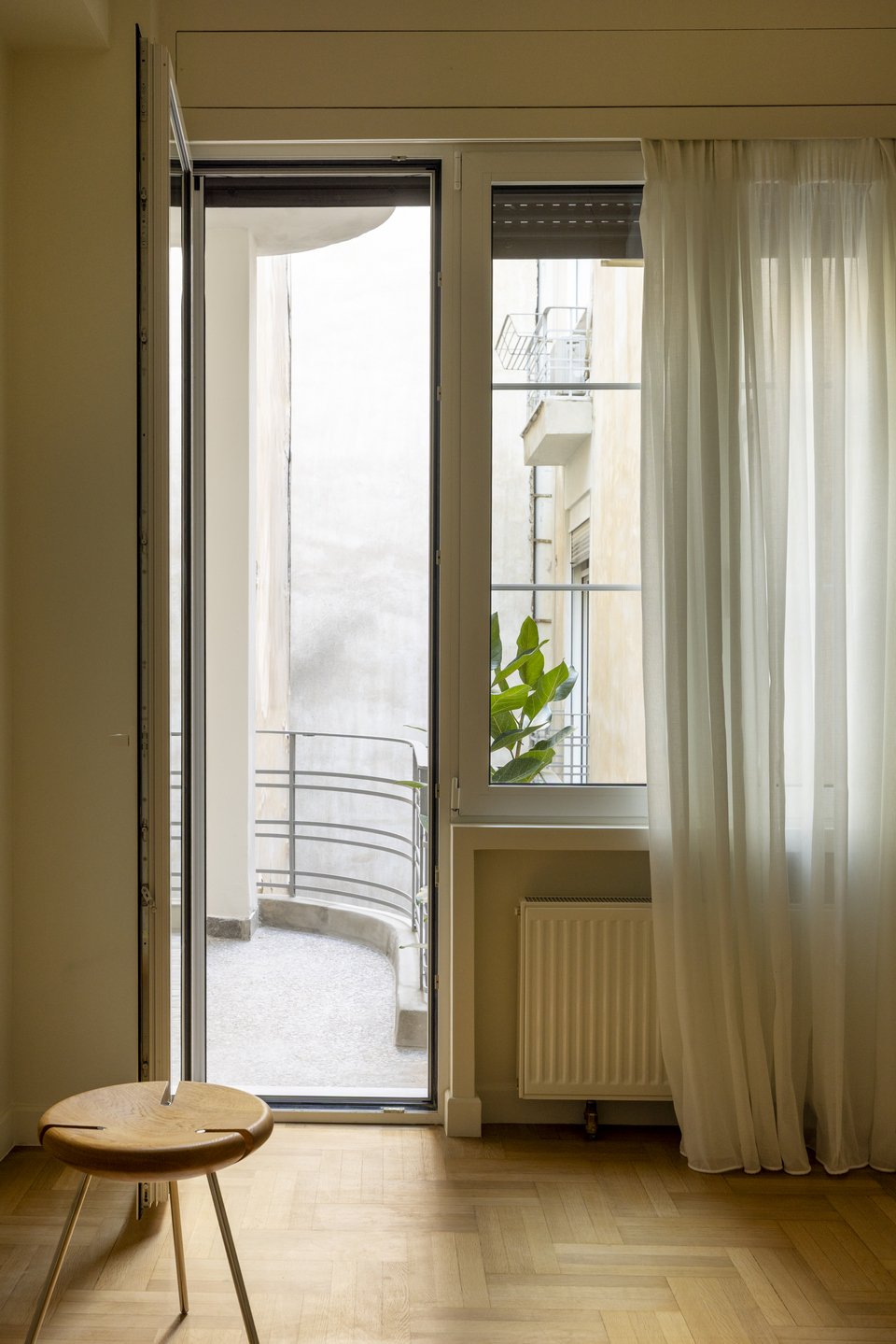 Η κουζίνα, τα μπάνια και οι ντουλάπες ανασχεδιάστηκαν πλήρως, ενώ ο κλιματισμός ενσωματώθηκε σε προσεκτικά σχεδιασμένες ψευδοροφές «για να ενισχύσει την άνεση χωρίς να διακυβευτεί η αρχιτεκτονική σαφήνεια του διαμερίσματος», όπως εξηγούν οι συντελεστές του έργου.