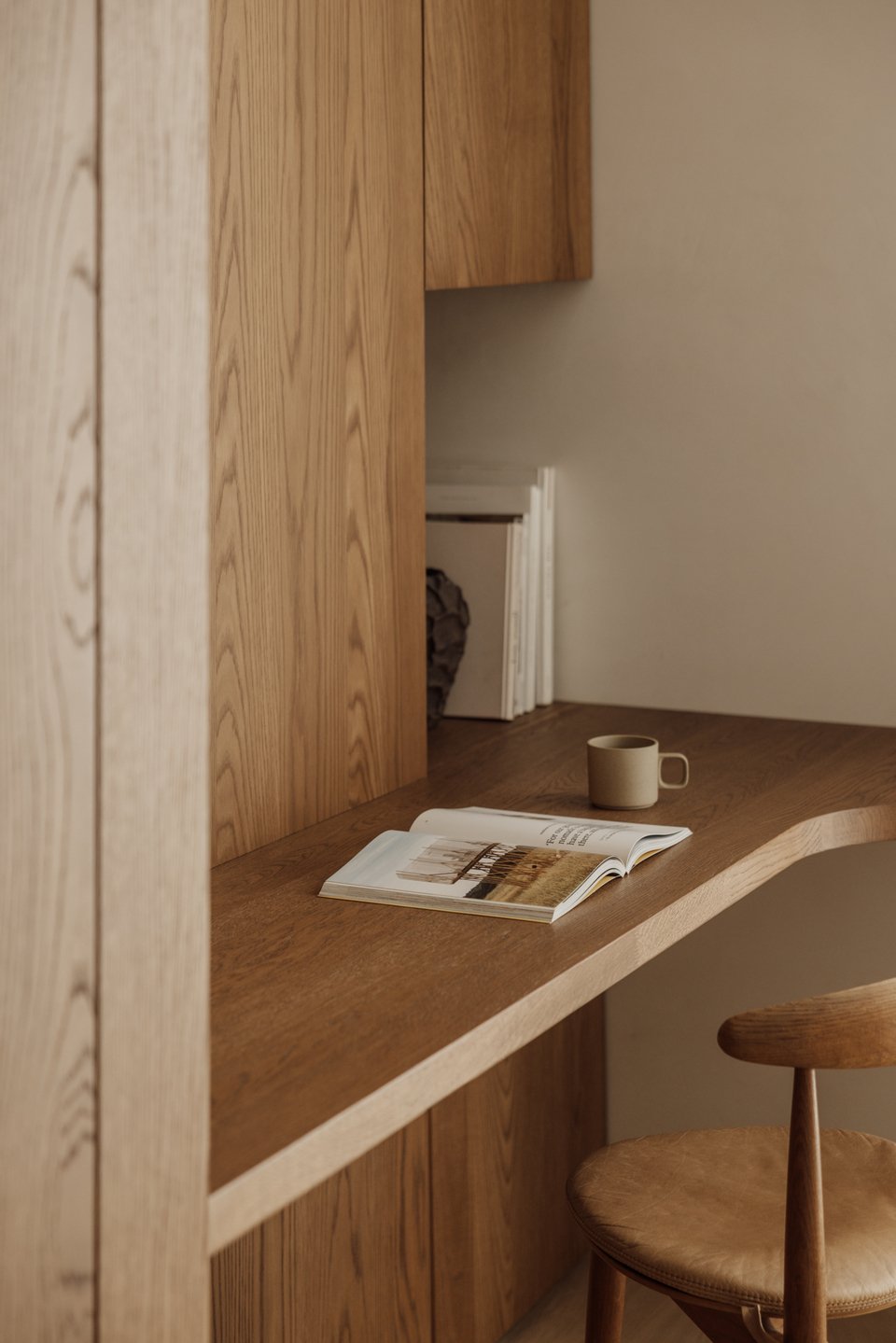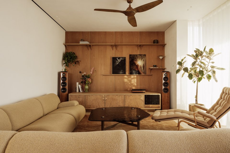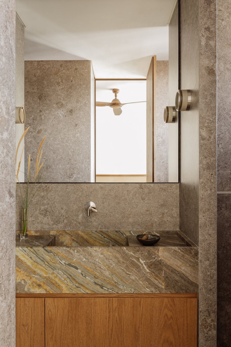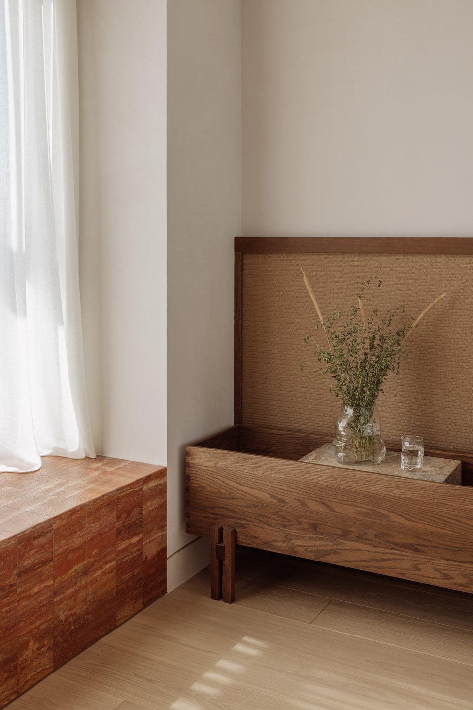 Το διώροφο διαμέρισμα καταλαμβάνει ολόκληρο τον τέταρτο και τον πέμπτο όροφο της πολυκατοικίας. Όταν το δημιουργικό δίδυμο άρχισε να σκέφτεται το ιδανικό σπίτι που θα στέγαζε «για πάντα» την τετραμελή οικογένειά του, είχε κατά νου ένα σύνολο βασικών στόχων: Ήξεραν και οι δύο ότι χρειάζονταν έναν χώρο που να αντικατοπτρίζει την προσωπικότητά τους. Κάτι οικείο και συγκεκριμένο για την τοποθεσία, αλλά πραγματικά εξατομικευμένο, που θα αποτελούσε την ενσάρκωση των αξιών του στούντιο τους.
