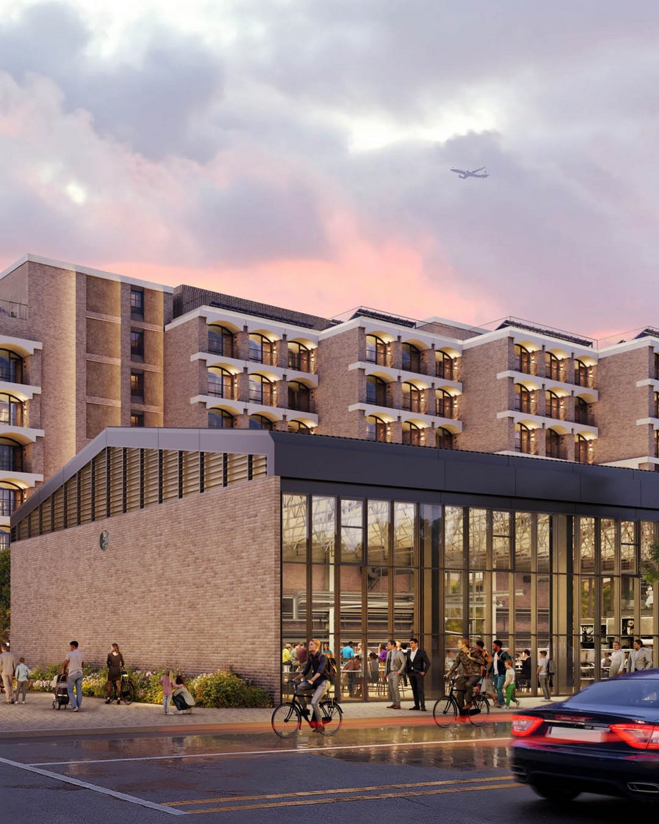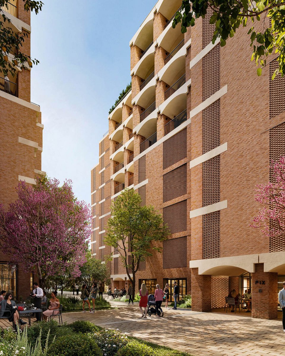 Η διαμορφωμένη δημόσια πλατεία ορίζεται από ένα κεντρικό υδάτινο στοιχείο και πλαισιώνεται από πράσινο, εξηγεί το διεθνές αρχιτεκτονικό γραφείο. «Συνδέεται με τη βάση τόσο του νέου ξενοδοχείου όσο και του κτιρίου κατοικιών, τα οποία βρίσκονται δίπλα-δίπλα. Το ξενοδοχείο διαθέτει βεράντες που έχουν θέα στον δημόσιο χώρο, ενώ το παρακείμενο οικιστικό συγκρότημα προσφέρει θέα στη θάλασσα και ενσωματώνει την αρχιτεκτονική τοπίου στον ιστό του σχεδιασμού της ανάπτυξης με σκιασμένες πράσινες βεράντες. Το γενικό σχέδιο του γραφείου θα μετατρέψει επίσης το παλιό ζυθοποιείο FIX σε μια πολιτιστική καρδιά, με γκαλερί τέχνης, μουσεία και χώρους φιλοξενίας μέσα στα πρώην βιομηχανικά κτίρια», εξηγεί η ομάδα του γραφείου Foster + Partners.