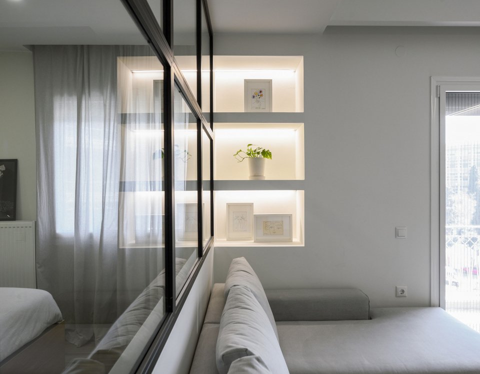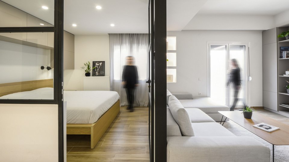 Ποιος θα μπορούσε να φανταστεί ότι ένα παλιό διαμέρισμα στη Θεσσαλονίκη, εξαιρετικά πυκνό με πολλούς τοίχους και χωρίς φως, θα περιλάμβανε ένα υπνοδωμάτιο με γυάλινα στοιχεία.