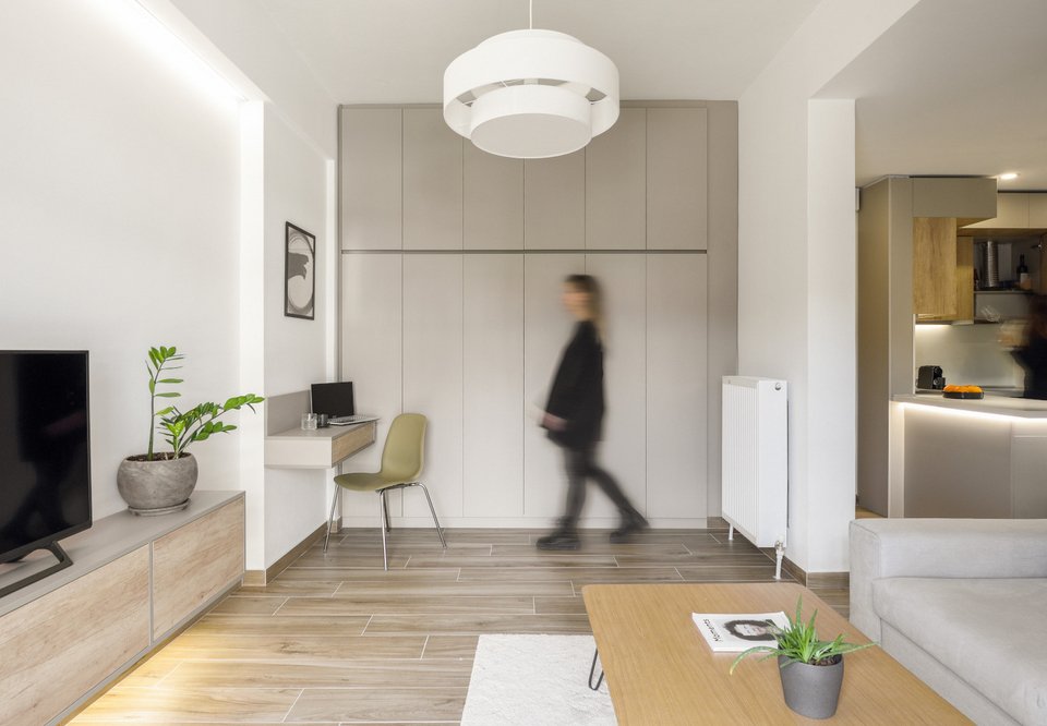 Στόχος η απόλυτη ανάδειξη των χωρικών ποιοτήτων του διαμερίσματος, του προσανατολισμού, του φυσικού φωτισμού και η προώθηση μιας αίσθησης ελευθερίας μέσα σε αυτόν.