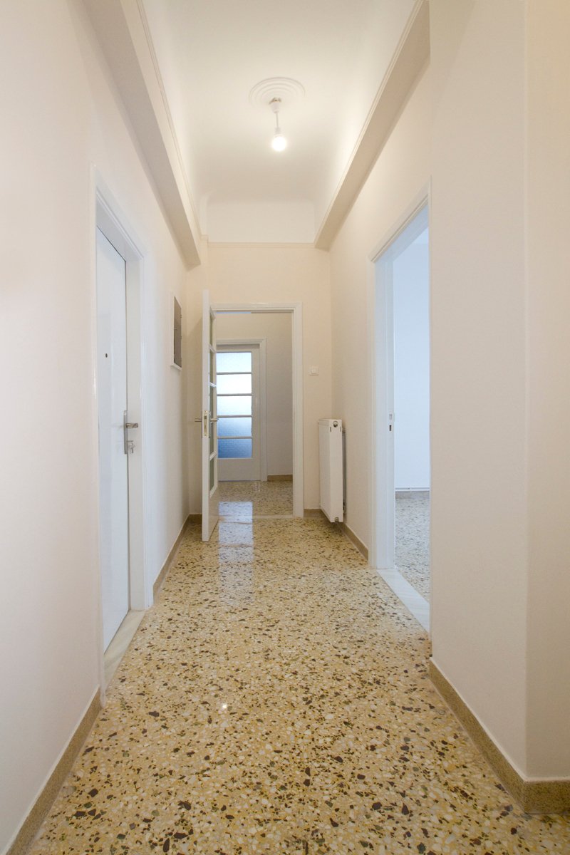 Διατηρήσαμε και αποκαταστήσαμε όλες τις επιφάνειες μωσαϊκών και μαρμάρου, όλα τα αυθεντικά εσωτερικά κουφώματα και ξύλινα δάπεδα. Στα λουτρά και τις κουζίνες, αφού ανακαινίσαμε τα υδραυλικά τους, κατασκευάσαμε εκ νέου μωσαϊκά δάπεδα. Στους χώρους αυτούς προσδώσαμε μια εικόνα που περιέχει την ανάμνηση της εποχής κατασκευής του κτηρίου, με χρωματιστά πλακίδια μικρών διαστάσεων επί των τοίχων και βαφή των άνω τμημάτων με ριπολίνες που παραπέμπουν στις παλαιές λαδομπογιές. Τις δε ντουζιέρες κατασκευάσαμε από μωσαϊκό», περιγράφουν οι αρχιτέκτονες.