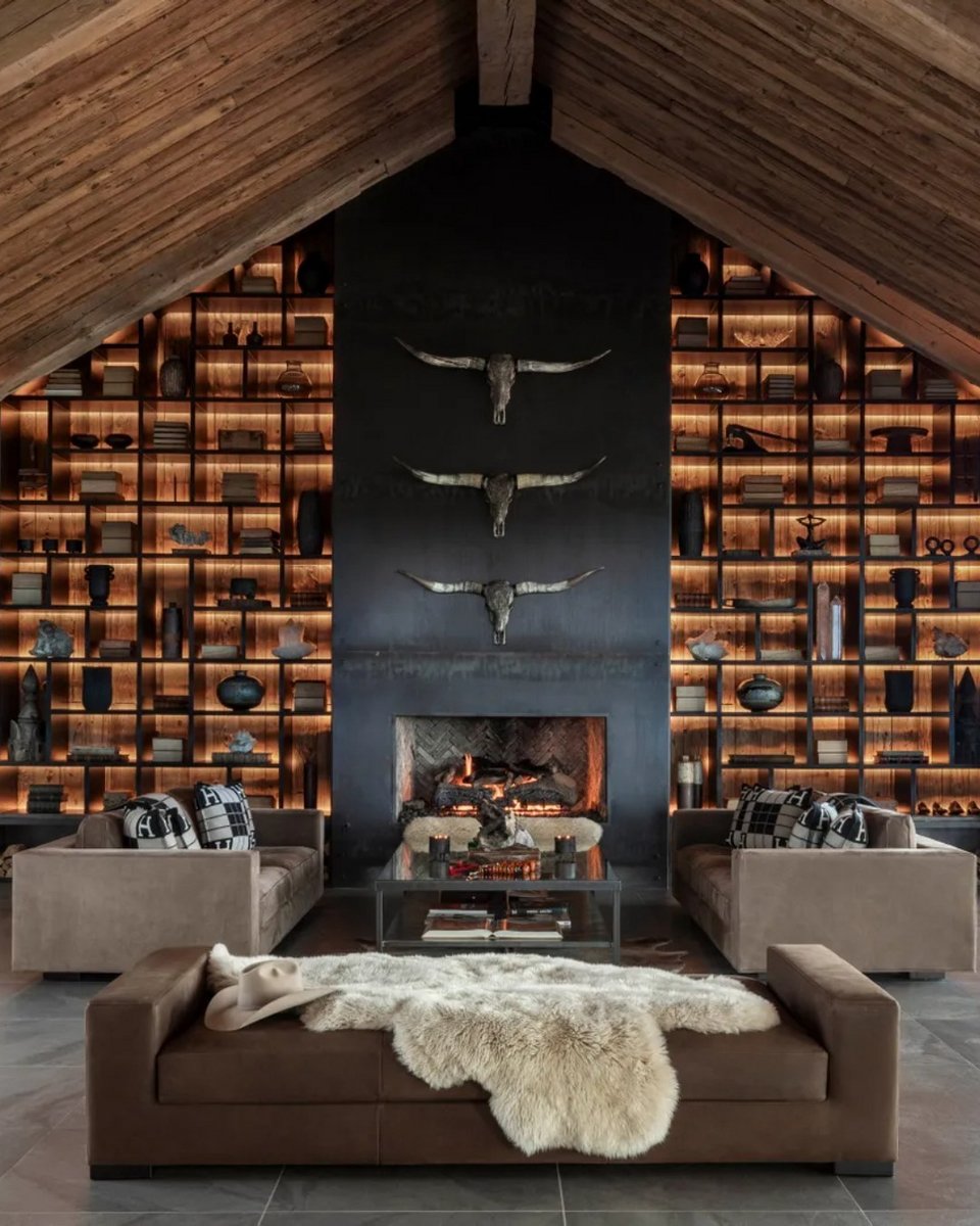 Ένα χαρακτηριστικό παράδειγμα είναι το σαλόνι της Yolanda Hadid στο ράντσο της στο Fort Worth του Τέξας. Η πρώτη εικόνα είναι εντυπωσιακή: ψηλοτάβανα, τεράστια ράφια και μια αίσθηση ρουστίκ πολυτέλειας. Η απουσία τηλεόρασης δεν ενοχλεί, ενώ οι θέσεις των καθισμάτων έχουν διαταχθεί με γνώμονα τη συζήτηση και τη σύνδεση. Το αποτέλεσμα; Ένας χώρος ανοιχτός, φιλόξενος και άνετος.