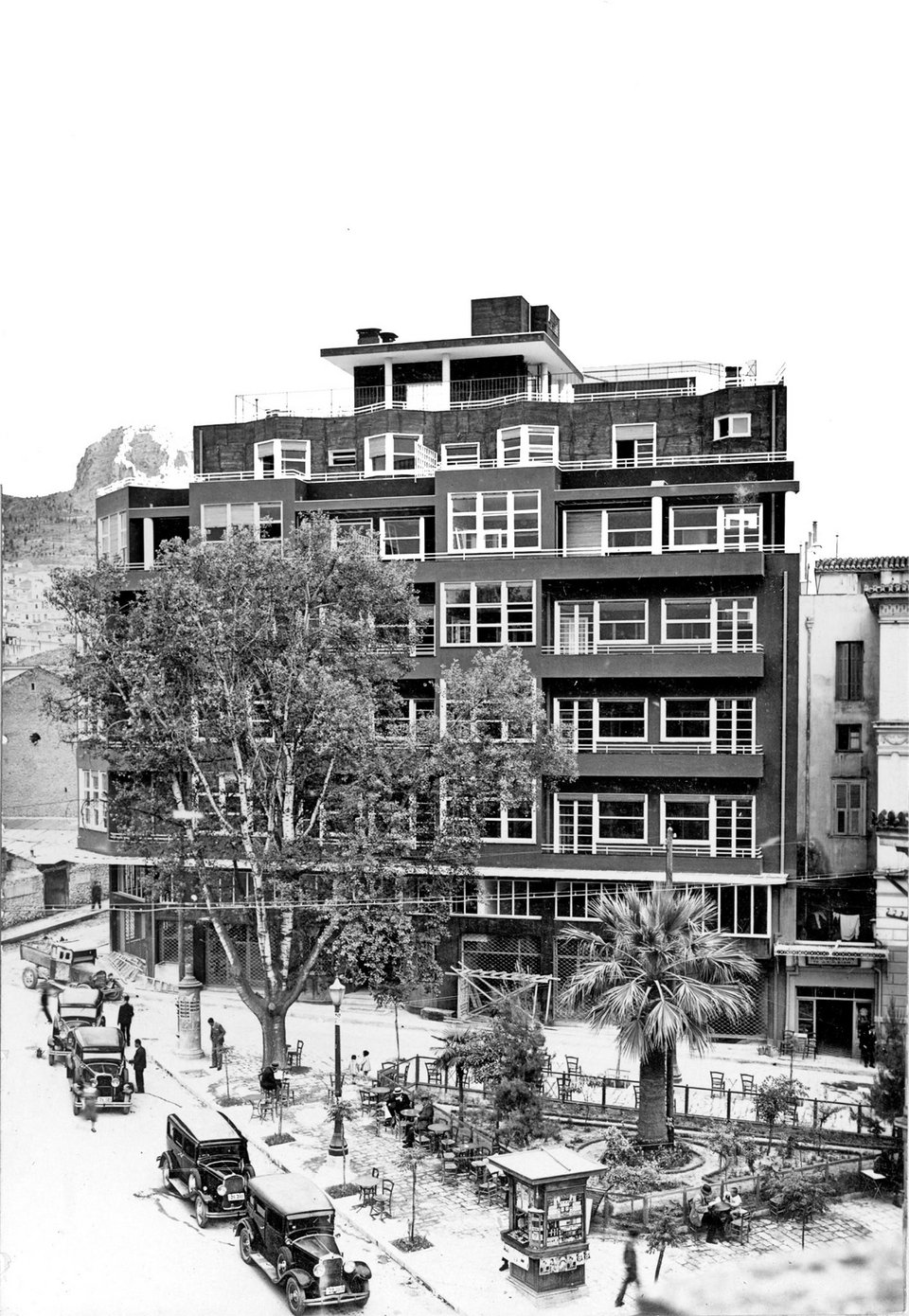 Στη συμβολή της Αραχώβης με τη Θεμιστοκλέους, πάνω στην κεντρική πλατεία των Εξαρχείων, η Μπλε Πολυκατοικία εγείρεται το 1933, «κλείνοντας» φέτος τα 89 χρόνια ζωής. Αποτελεί σίγουρα κομμάτι της ιστορίας της πόλης και ένα από τα πιο εμβληματικά κτίρια του ελληνικού μοντερνισμού. Είναι άλλωστε και το κτίριο για το οποίο είναι κυρίως γνωστοί οι δημιουργοί του, ο αρχιτέκτονας Κυριακούλης Παναγιωτάκος και ο ζωγράφος Σπύρος Παπαλουκάς. Είναι επίσης το κτίριο για το οποίο ο σπουδαίος Ελβετός αρχιτέκτονας Λε Κορμπυζιέ, κατά την επίσκεψη του στην Αθήνα το 1933, είχε σχολιάσει «c' est tres beau», δηλαδή «είναι πολύ όμορφο».