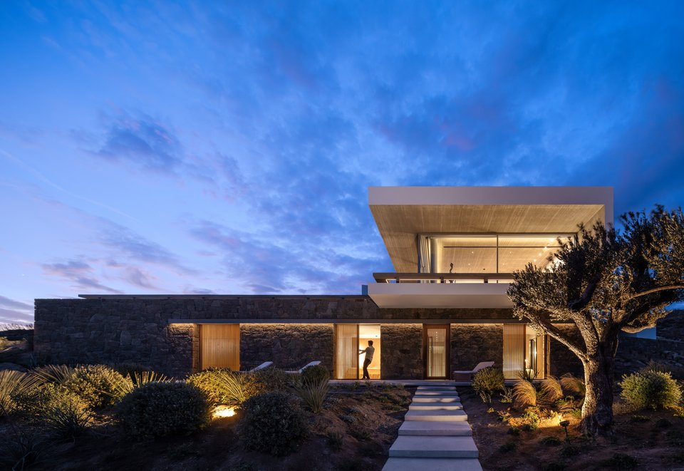Τοποθετημένη σε στρατηγικό σημείο και έχοντας νότιο προσανατολισμό «για να έχει φυσική θερμική και οπτική άνεση», όπως εξηγεί το αρχιτεκτονικό team, η βίλα μοιάζει με παρατηρητήριο στο Αιγαίο.