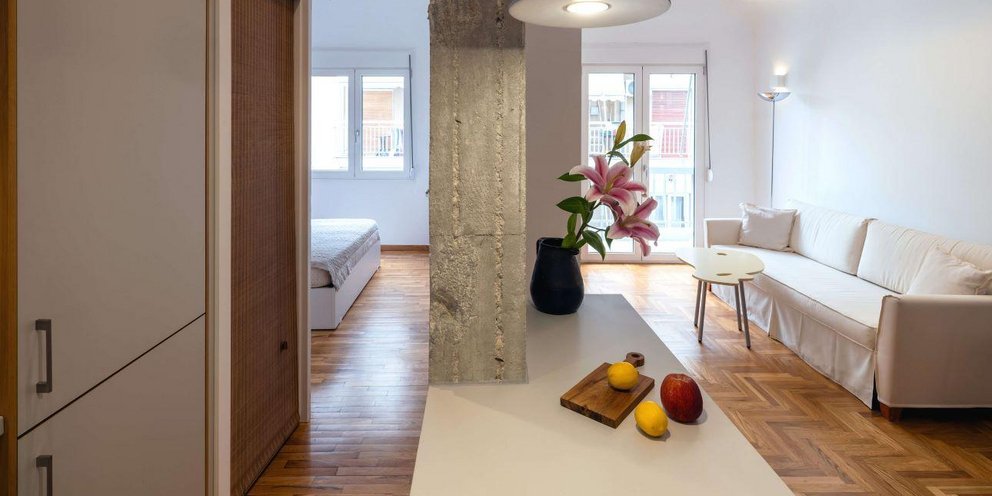 Η αρχιτεκτονική παρέμβαση του Ορέστη Σακελλαρίου μεταμορφώνει ένα σπίτι 55τμ, χαρίζοντας στην αισθητική της μοντέρνας αθηναϊκής πολυκατοικίας λειτουργικότητα και φως.