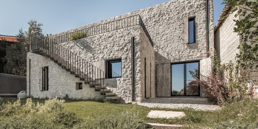 «Χρησιμοποιήθηκαν τοπικά υλικά και τεχνίτες της ευρύτερης περιοχής ώστε να έχουμε την καλύτερη περιβαλλοντική και οικονομική απόσβεση. Η επαναχρησιμοποιημένη τοπική πέτρα η οποία συμπληρώνεται με νέους λίθους, σε συνδυασμό με φυσικά υλικά, αναβιώνει την πρωτόλεια αίσθηση των παραδοσιακών στάβλων, χαρακτηριστικών στην Πελοπόννησο. Μέσα σε άπλετο φυσικό φως, οι πέτρινοι τοίχοι, με τη σύγχρονη επεξεργασία τους, χαρίζουν στην κατοικία ποικιλία υφών καθ΄ όλη τη διάρκεια της ημέρας», υπογραμμίζει η Ivana Lukovic.