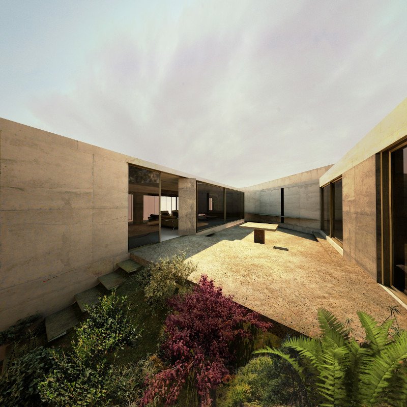 Αυτό αποτελείται από έναν ενιαίο χώρο καθιστικού και δύο μεγάλα υπνοδωμάτια. Το φυσικό στοιχείο εισάγεται ως αναπόσπαστο μέρος της κατοικίας. Οι κύριοι χώροι χωρίζονται από μια αυλή στην καρδιά του σπιτιού, η οποία ενισχύει το φως και τις συνδέσεις μεταξύ εσωτερικών και εξωτερικών χώρων. Οπότε όπως αντιλαμβάνεστε το φως ρέει άφθονο.