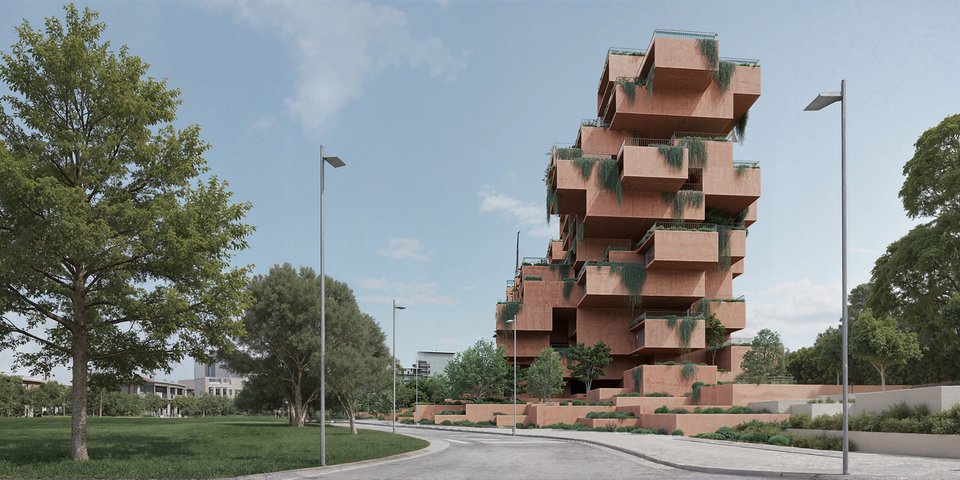 «Πράσινα δώματα κατακλύζουν κλιμακωτά το κτίριο, μεταμορφώνοντας τον όγκο σε ένα καλλιεργημένο τοπίο. Φυτικά και υδάτινα στοιχεία δεν είναι διακοσμητικά - είναι ζωτικής σημασίας. Απαλύνουν τη γεωμετρία, προσκαλούν τη μεταβολή των εποχών και επαναφέρουν την αίσθηση του οργανικού χρόνου στην αστική καθημερινότητα. Το κτίριο “αναπνέει” μέσα από τα ανοιχτά του όρια, τις διαδοχικές υποχωρήσεις και την ενσωμάτωσή του στο έδαφος», λέει ο αρχιτέκτονας.