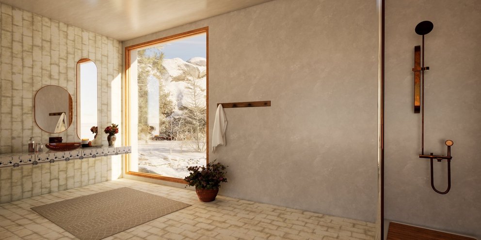 Η παραδοσιακή καμπίνα του ντους, μινιμαλιστική στην κατασκευή με τα γυάλινα πάνελ που για χρόνια θεωρούνταν πρότυπο κομψότητας και μοντέρνου σχεδιασμού, αρχίζει να υποχωρεί μπροστά σε μια πιο ολοκληρωμένη και «βιωματική» προσέγγιση του μπάνιου, εμπνευσμένη από πολυτελή σπα και τα χαμάμ. Έτσι, επαναπροσδιορίζεται πλήρως η έννοια της ευεξίας στο σπίτι.