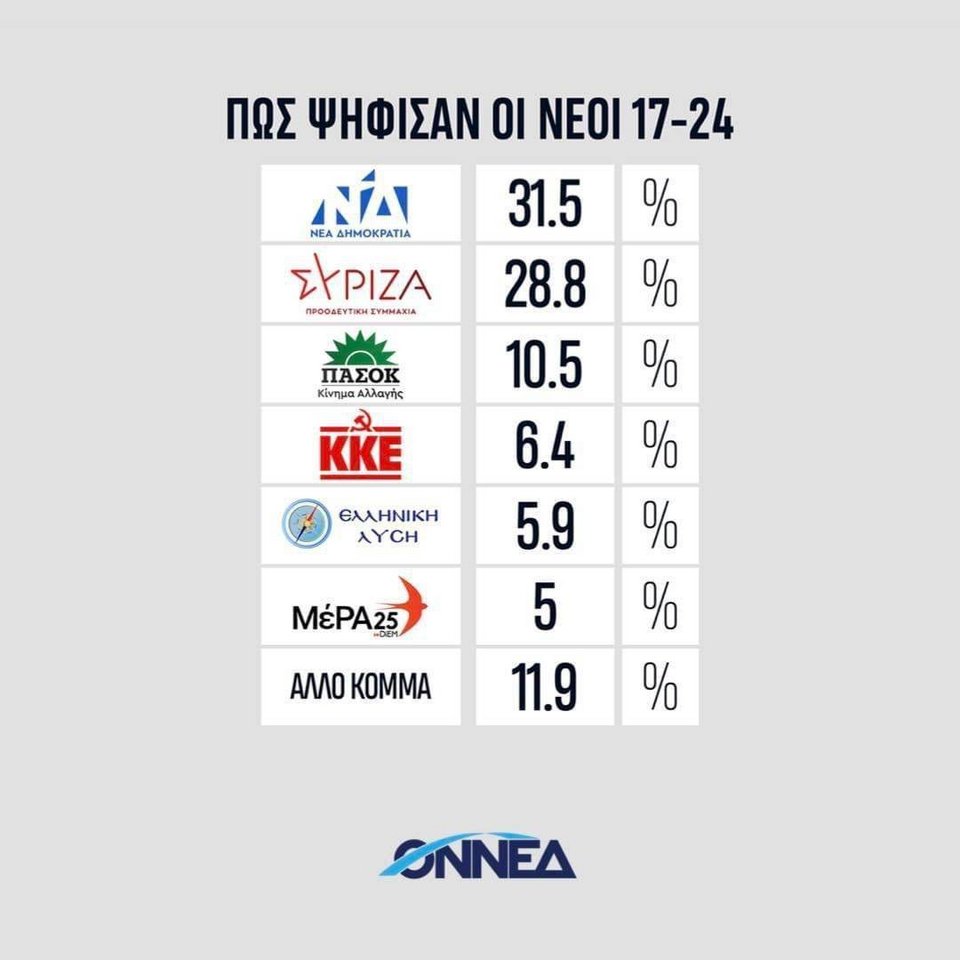 Σαρωτική ήταν η νίκη της ΝΔ και στις νέες ηλικίες 17 έως 34, με την ΟΝΝΕΔ να τονίζει την «εμπιστοσύνη της νέας γενιάς στο έργο της κυβέρνησης».