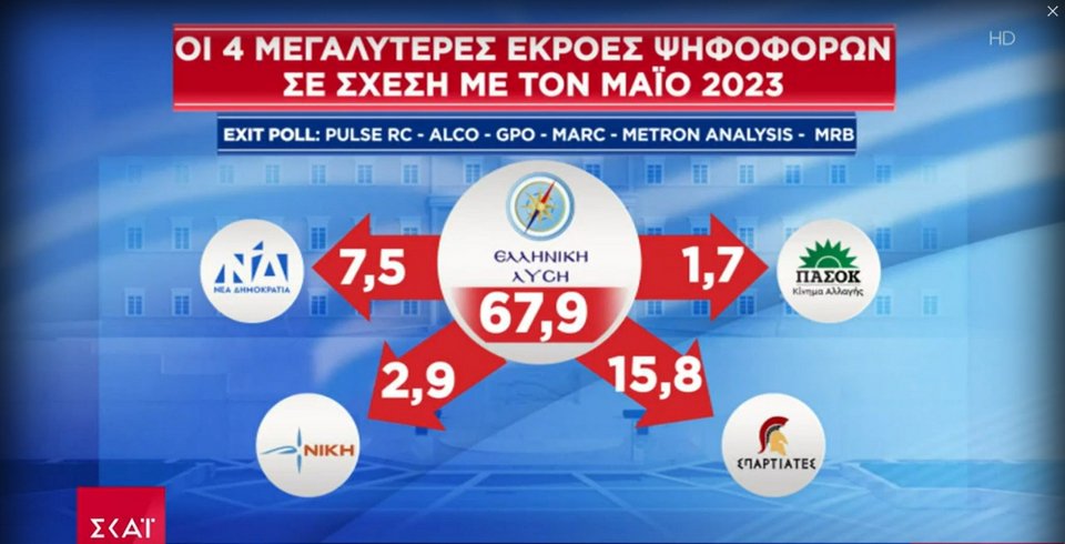 Exit Poll: Συσπειρώσεις Ιουνίου 2023 -Περίπου 4 στους 10 ψηφοφόρους της Πλεύσης τον Μάιο άλλαξαν κόμμα