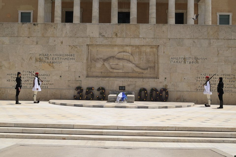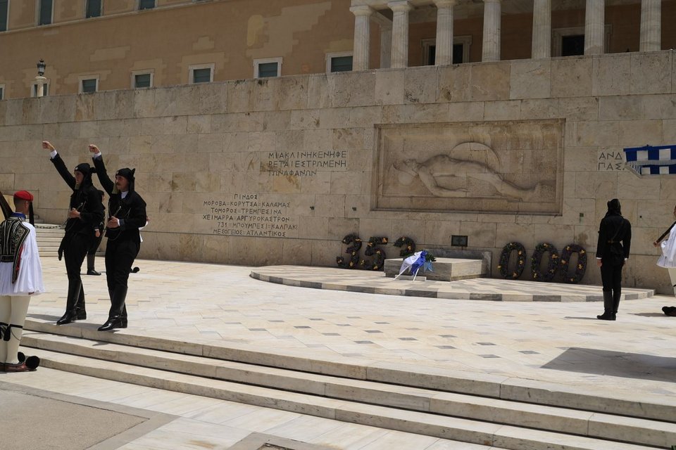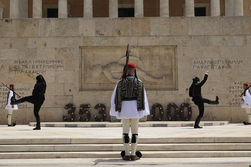 Στην Αθήνα, στο Σύνταγμα συγκεκριμένα η εκδήλωση ήταν άκρως συγκινητική. Στις 11 το πρωί οι στρατιώτες της Προεδρικής Φρουράς απέδωσαν τιμές κατά την καθιερωμένη παρέλαση της Κυριακής και αποχώρησαν συνοδεία μπάντας που παιάνιζε το «Μακεδονία ξακουστή». Στις 12 το μεσημέρι έφθασαν δύο Εύζωνες με την ποντιακή στολή και δύο με τα λευκά –την επίσημη στολή– για την τιμητική φύλαξη.