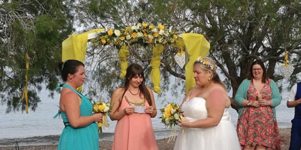 Όρκους αγάπης αντάλλαξαν δύο γυναίκες στην Κρήτη. Ο γάμος ομοφυλοφίλων έγινε στην παραλία στο χωριό «Κάτω Ζάκρο».