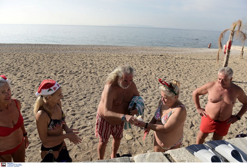 Βοηθούντος και του καιρού που θυμίζει μάλλον... άνοιξη, με υψηλές για τηνε ποχή θερμοκρασίες, λάτρεις της χειμερινής κολύμβησης τίμησαν το 2024 με μια επίσκεψη στην παραλία, όπου έκοψαν την βασιλόπιτα. Στη συνέχεια βούτηξαν στα νερά του Σαρωνικού για το πρώτο μπάνιο του νέου έτους.