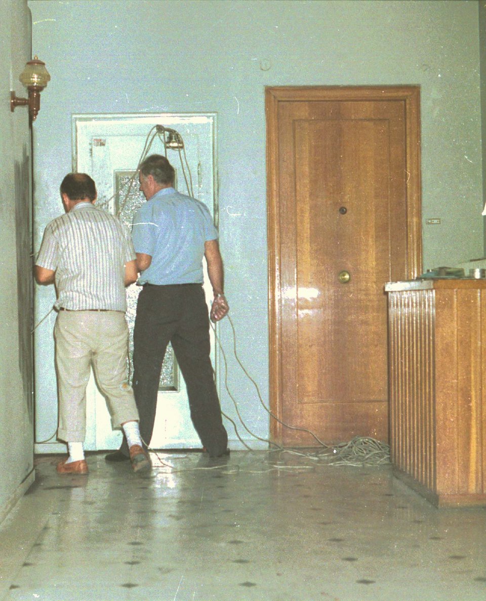 Μόνος του λοιπόν ο Παύλος Μπακογιάννης μπαίνει στην είσοδο της πολυκατοικίας όπου στεγαζόταν το πολιτικό του γραφείο.