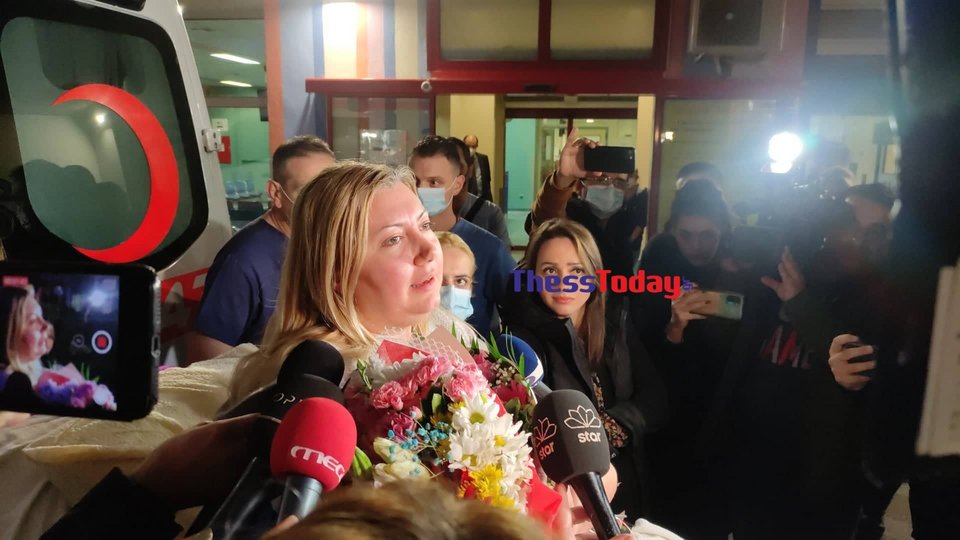 Η Άννα έφτασε λίγα λεπτά πριν από τις 21.00 στο νοσοκομείο Παπαγεωργίου κρατώντας μια ανθοδέσμη και χαμογελαστή, ενώ αμέσως στο πλευρό της ήρθαν οι γονείς της συγκινημένοι για να την υποδεχτούν.