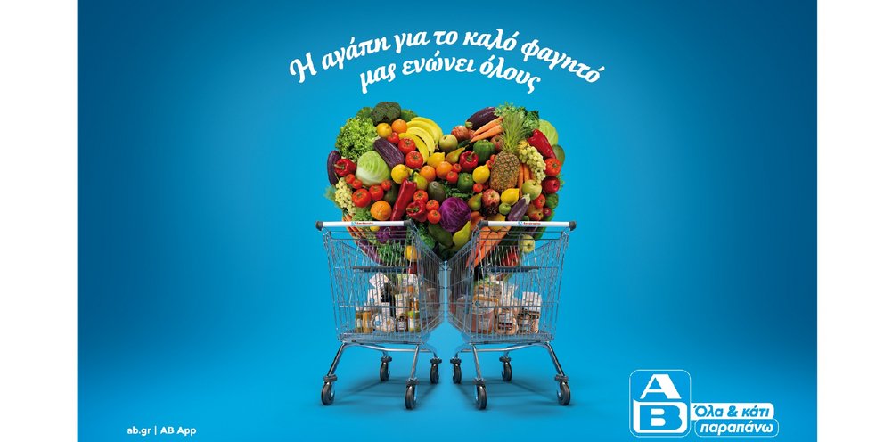 Η ΑΒ επικοινωνεί ένα μήνυμα με σαφές περιεχόμενο: ότι το «καλό φαγητό» είναι κομμάτι της ζωής μας και ότι είναι εδώ για να το υποστηρίξει, με συνέπεια και με προτάσεις που κάνουν τη διαφορά – όλα & κάτι παραπάνω.