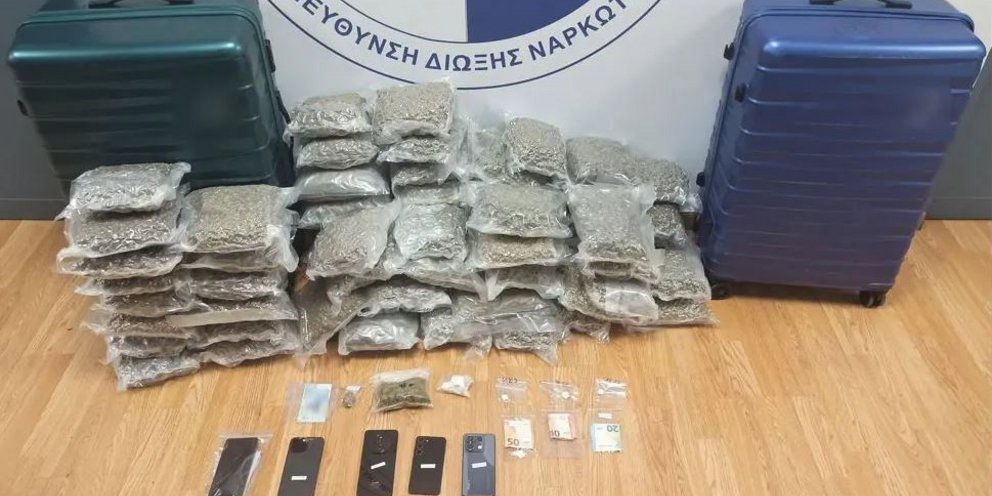 Πιο αναλυτικά, ο 27χρονος προερχόμενος από χώρα του εξωτερικού εντοπίσθηκε από αστυνομικούς του Τμήματος Δίωξης Ναρκωτικών Αερολιμένα στο χώρο αφίξεων, όπου κατελήφθη να κατέχει εντός δυο αποσκευών του, για λογαριασμό των τριών συγκατηγορουμένων του και με σκοπό την περαιτέρω διακίνηση, -60- νάιλον συσκευασίες, που περιείχαν ακατέργαστη κάνναβη υδροπονικής καλλιέργειας (skunk), συνολικού μικτού βάρους -32- κιλών, τις οποίες εν συνεχεία θα παραλάμβανε ο 35χρονος, προκειμένου να τις παραδώσει με τη χρήση ταξί στους τελικούς παραλήπτες.