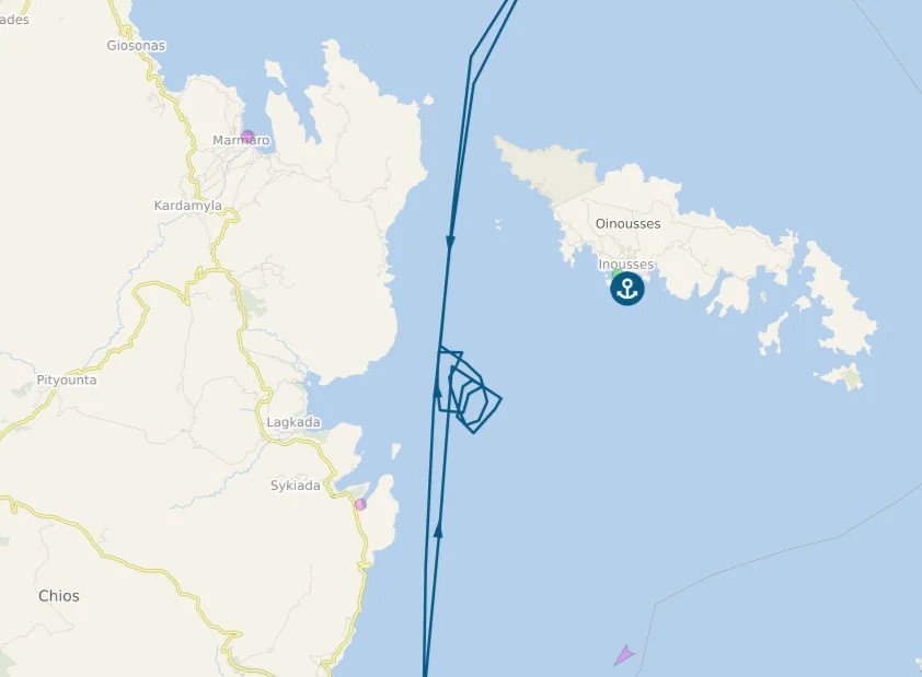 Ο χάρτης με την πορεία του πλοίου «Αριάδνη» απ' όπου πήδηξε στη θάλασσα ο Τούρκος κρατούμενος