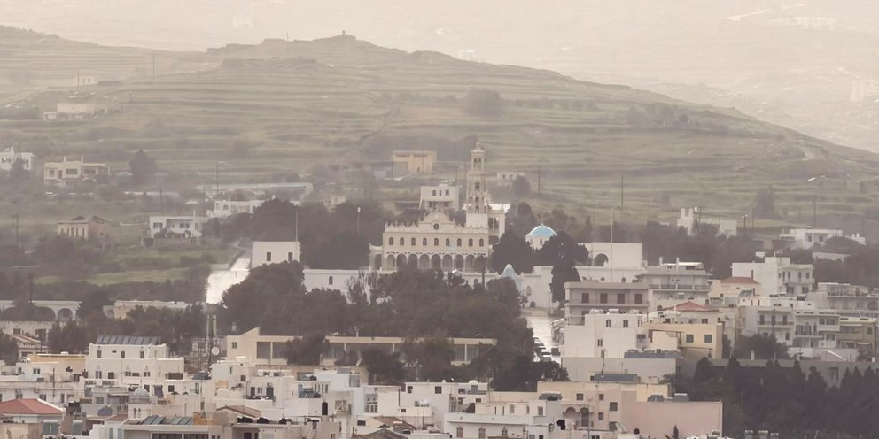 Έντονα προβλήματα προκαλεί η κακοκαιρία στην Τήνο, με κύριο χαρακτηριστικό τη μεγάλη συγκέντρωση αφρικανικής σκόνης στην ατμόσφαιρα, δημιουργώντας μια αποπνικτική ατμόσφαιρα.