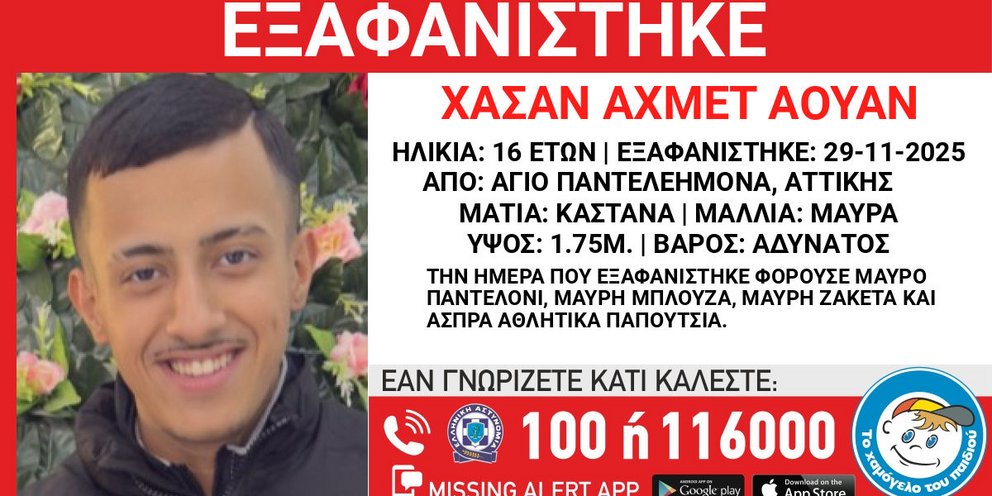 Αυτός είναι ο 16χρονος που εξαφανίστηκε από τον Άγιο Παντελεήμονα
