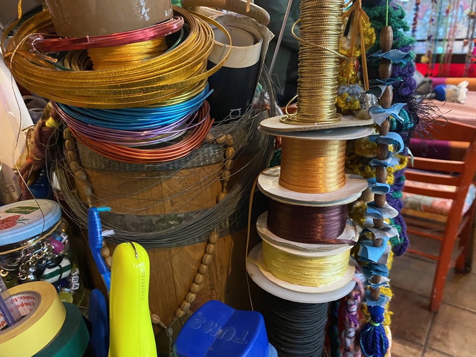 Με πρώτη ύλη υφάσματα, ανακυκλώσιμα υλικά και αντικείμενα συναισθηματικής αξίας, δημιουργεί εδώ και τέσσερις δεκαετίες εκατοντάδες χιλιάδες πολύχρωμες τζίβες και φούντες, που στολίζουν το κατάστημα εστίασης που διατηρεί στην Πλατεία Εμπορίου και δωρίζει σε ανθρώπους από κάθε γωνιά του πλανήτη, για καλοτυχία.