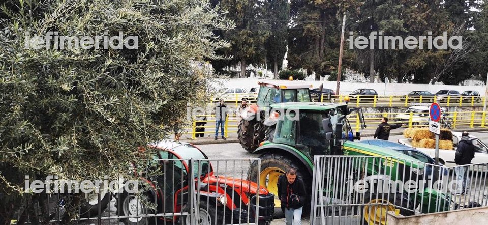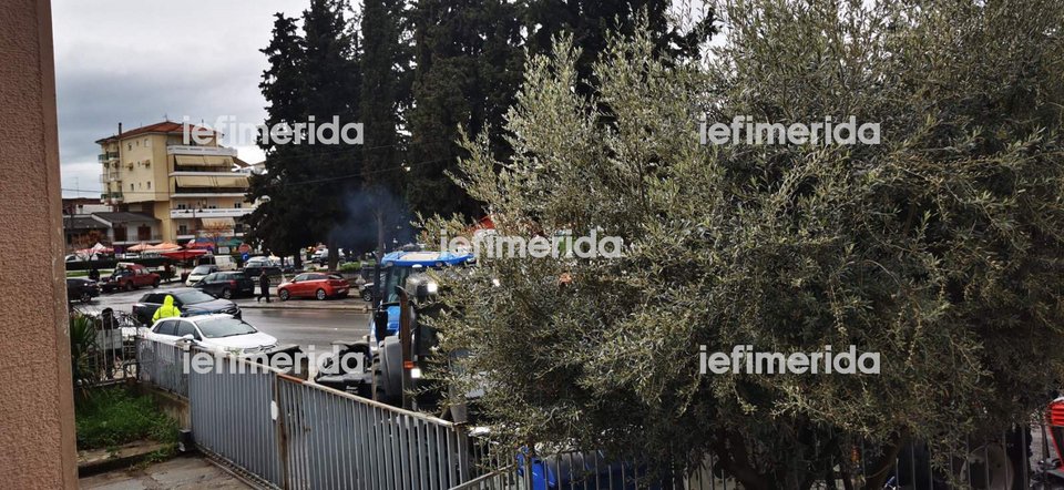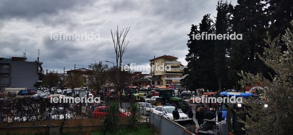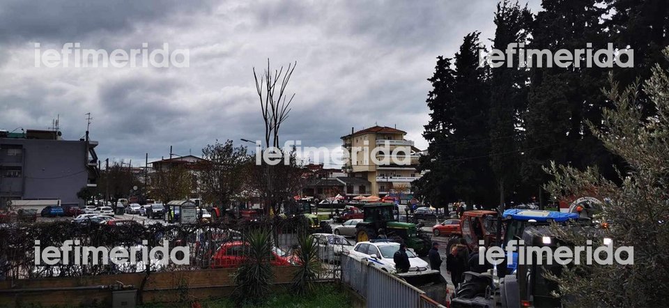 Ττα τρακτέρ διέσχισαν δρόμους της πόλης και κατευθύνθηκαν προς το Τελωνείο (πάνω από την υπόγεια διάβαση της οδού Φαρσάλων), το οποίο απέκλεισαν, ενώ πέταξαν και σανό.