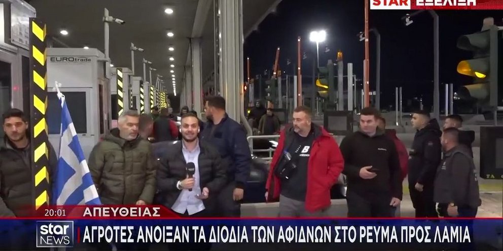 Οι αγρότες ξεκαθάρισαν ότι η πρόθεσή τους δεν είναι να δημιουργήσουν προβλήματα, ενώ σχεδιάζουν να κρατήσουν τα διόδια ανοιχτά έως τις 9:30 το βράδυ.