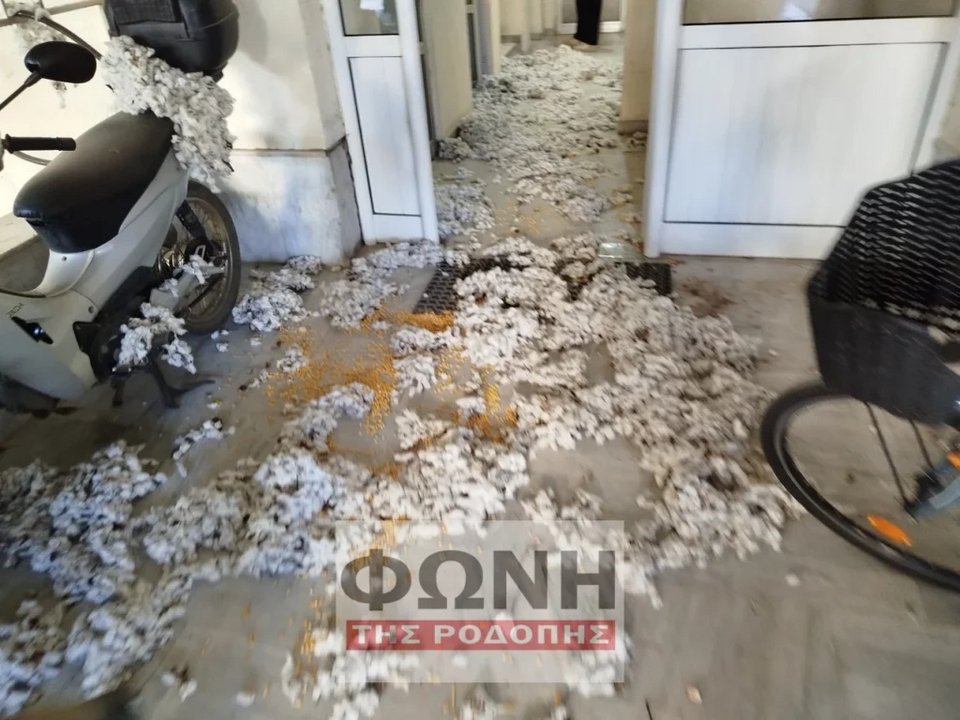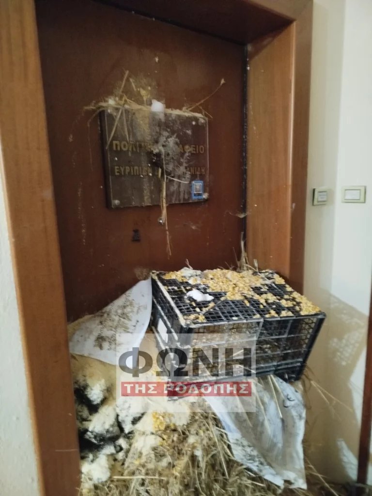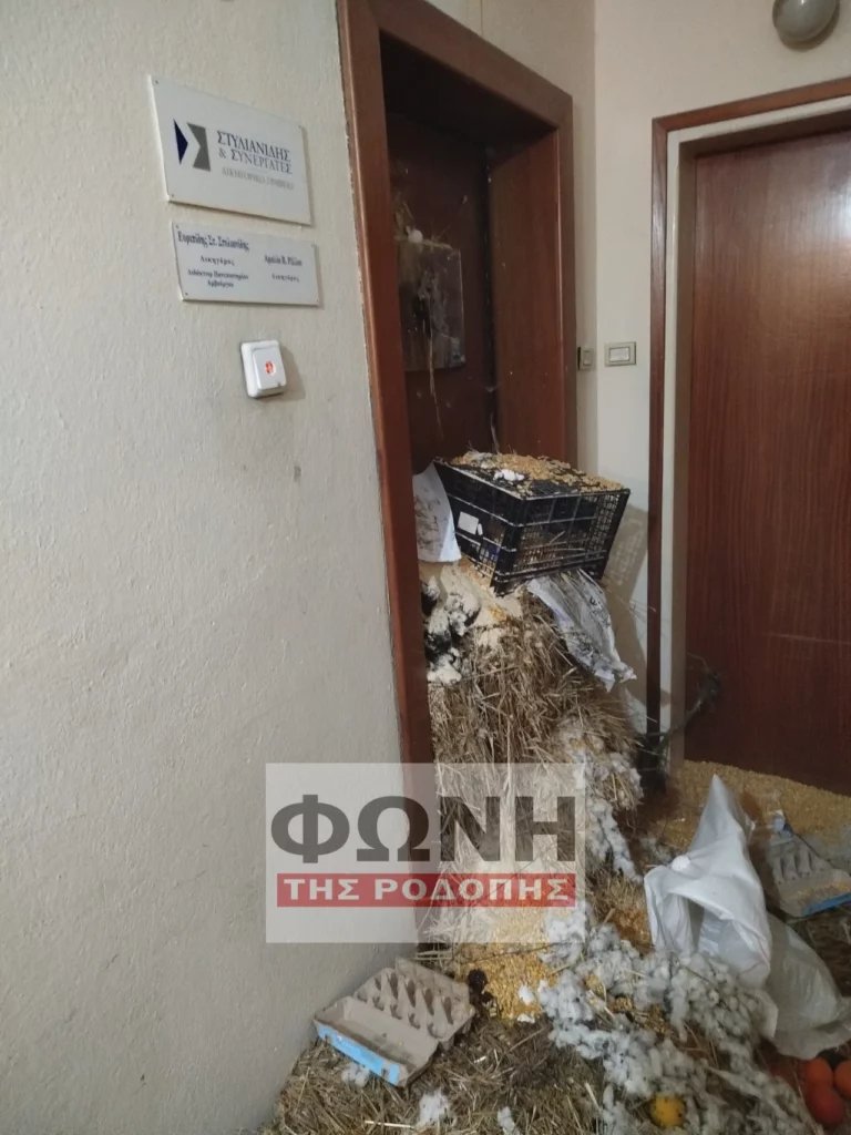 Σύμφωνα με το fonirodopis, οι αγρότες μετέφεραν τη διαμαρτυρία τους στην καρδιά της πόλης, ρίχνοντας άχυρα, βαμβάκι, σιτάρι και κοπριά την είσοδο της πολυκατοικίας και τον διάδρομο έξω από το γραφείο του βουλευτή Ροδόπης της ΝΔ, Ευριπίδη Στυλιανίδη.
