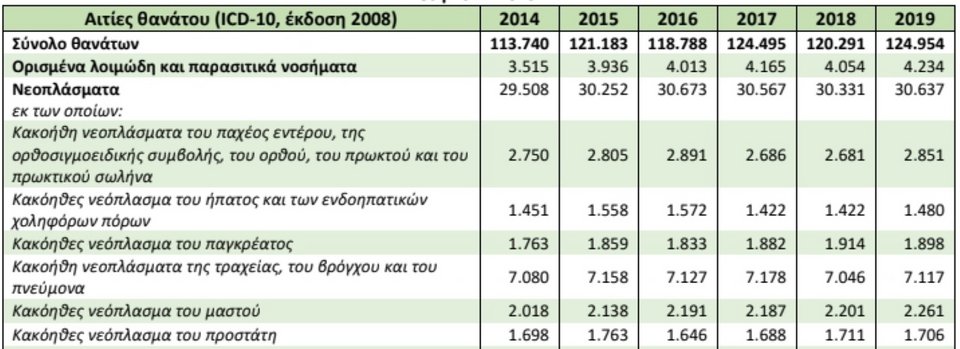O πίνακας για τους θανάτους από νεοπλάσματα:
