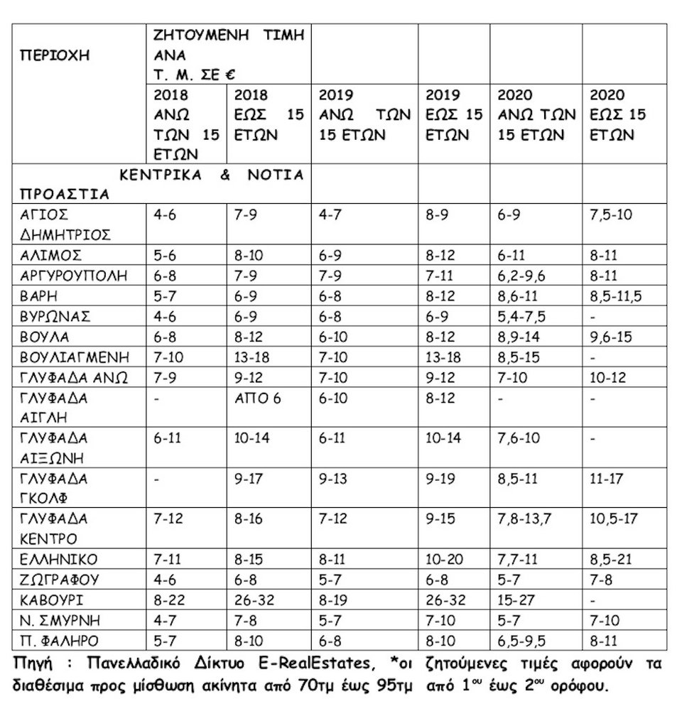 - Βούλα: Ακίνητα κυρίως ανακαινισμένα, υψηλών προδιαγραφών όπου στις ανώτερες τιμές βρίσκονται σε συγκρότημα με κοινόχρηστη πισίνα .