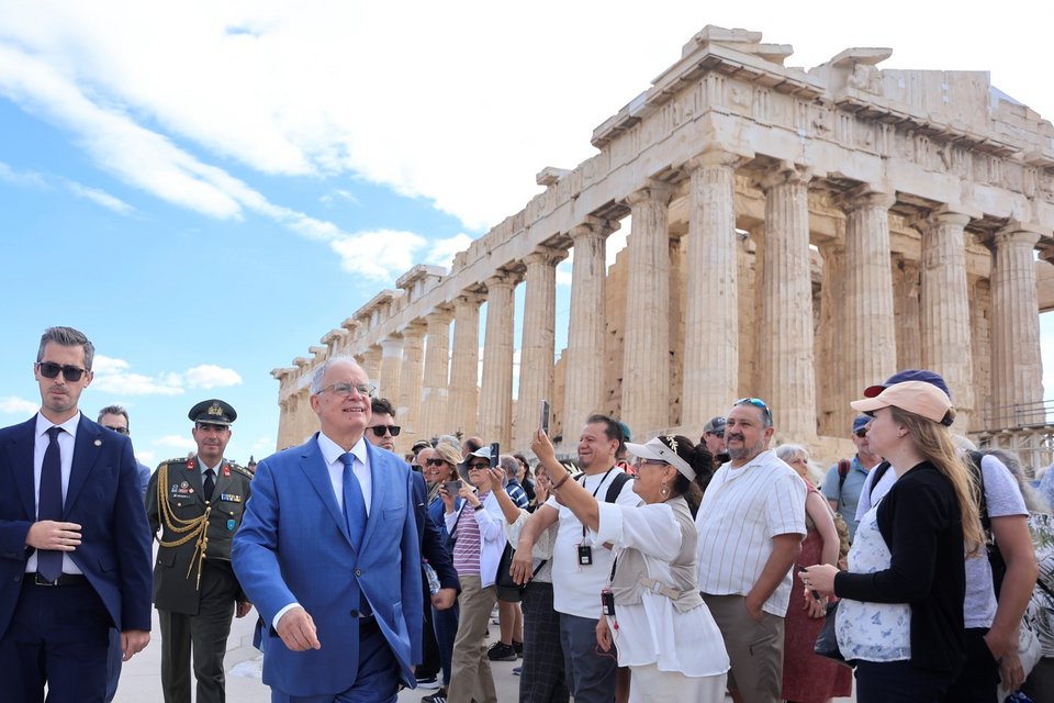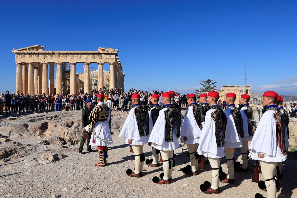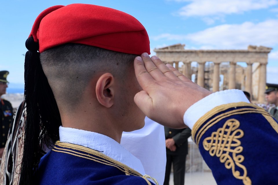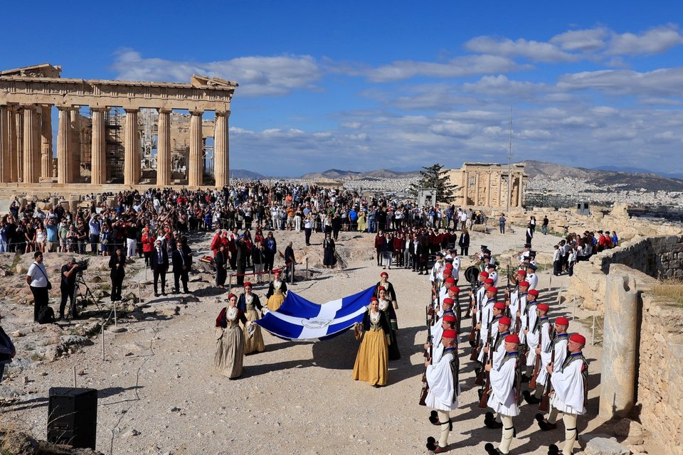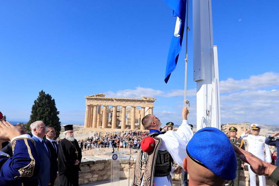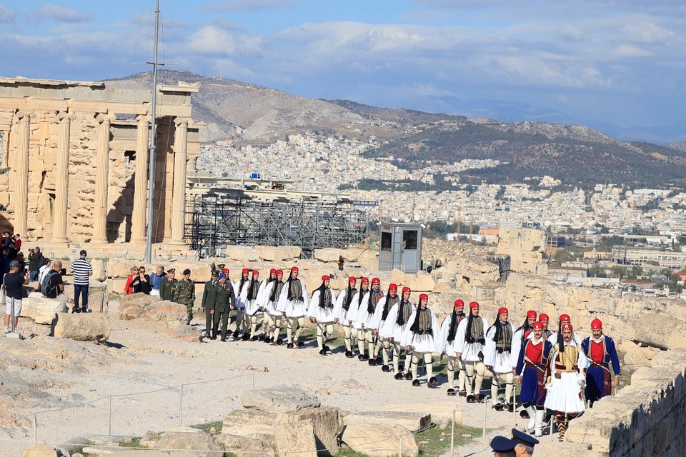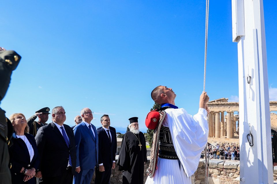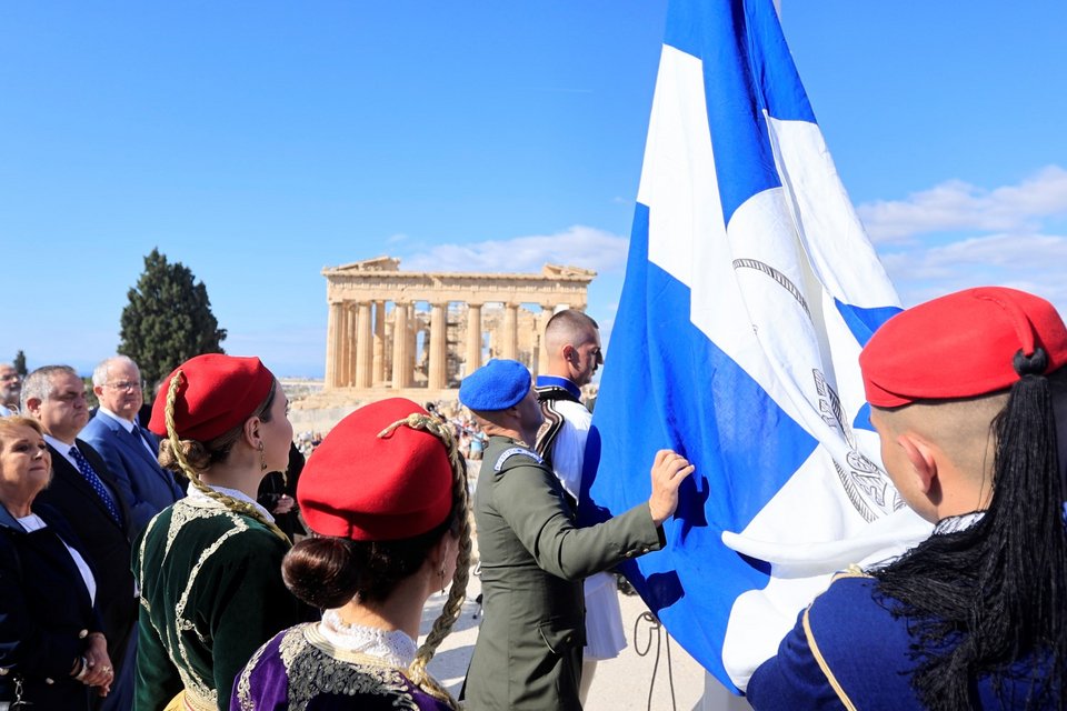 Με λαμπρότητα πραγματοποιήθηκε η τελετή έπαρσης της ελληνικής σημαίας στον Ιερό Βράχο της Ακρόπολης, στο πλαίσιο του εορτασμού της 81ης επετείου της Απελευθέρωσης των Αθηνών.