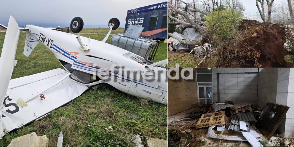 Για τις καταστροφές στο αεροδρόμιο και το κάμπινγκ: «Ζημιές καταγράφηκαν και στο αεροδρόμιο, όχι στις υποδομές, αλλά σε τέσσερα εκπαιδευτικά αεροσκάφη, με το κόστος να ξεπερνά τις 400.000 ευρώ, καθώς αναποδογυρίστηκαν πλήρως από την ένταση των ανέμων.