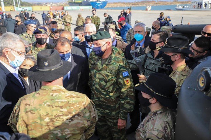 Αναφέρθηκε επίσης στην ιδιαίτερη σημασία της συνεχούς παρουσίας μονάδων των ΗΠΑ στην χώρα μας, καλωσορίζοντας τα στελέχη της 1st Combat Aviation Brigade, που κατόπιν της σύντομης παραμονής τους στην Αλεξανδρούπολη θα επιστρέψουν στην έδρα τους, στο Fort Riley του Κάνσας (ΗΠΑ), καθώς και τα στελέχη της 1st Air Cavalry Brigade, τα οποία προ της ανάπτυξής τους στην Ευρώπη θα φιλοξενηθούν στην Ελλάδα για ένα εξάμηνο (Στεφανοβίκειο, Βόλο), όπου προγραμματίζεται να διεξαχθούν σημαντικές δραστηριότητες επιχειρησιακής συνεκπαίδευσης, με σκοπό τη βελτίωση της διαλειτουργικότητας μεταξύ των Ενόπλων Δυνάμεων των δύο χωρών και την από κοινού επαύξηση της μαχητικής τους ικανότητας.