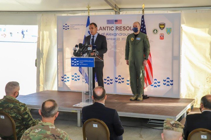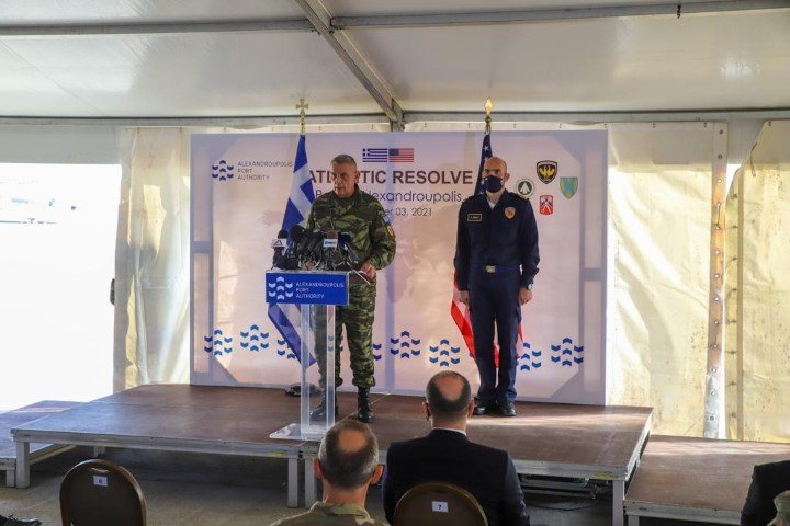 Στον χαιρετισμό του, ο αρχηγός ΓΕΕΘΑ συνεχάρη τους εμπλεκόμενους φορείς για τη συμβολή τους στις επιχειρήσεις υποδοχής, παραμονής και προώθησης των στρατιωτικών δυνάμεων των ΗΠΑ, επισημαίνοντας τη στρατηγική σημασία και τη σπουδαιότητα των διευκολύνσεων που παρέχει η Ελλάδα μέσω των υποδομών της Αλεξανδρούπολης, την οποία αποκάλεσε «Σούδα του Βορρά», καθόσον εξελίσσεται σε σημαντικό διαμετακομιστικό κόμβο της Νοτιοανατολικής Ευρώπης, ειδικά σε ό,τι αφορά στη διεξαγωγή της Επιχείρησης «ATLANTIC RESOLVE».
