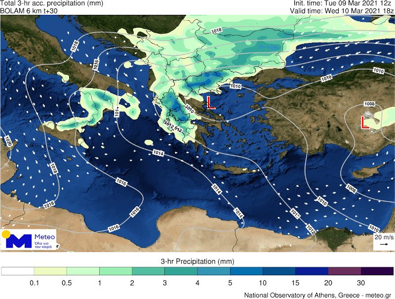 Στους προγνωστικούς χάρτες που ακολουθούν παρουσιάζεται η γεωγραφική κατανομή των φαινομένων που αναμένεται να εκδηλωθούν στη χώρα κατά τα τρίωρα 17:00 - 20:00 και 20:00 - 23:00 της Τετάρτης 10/03.