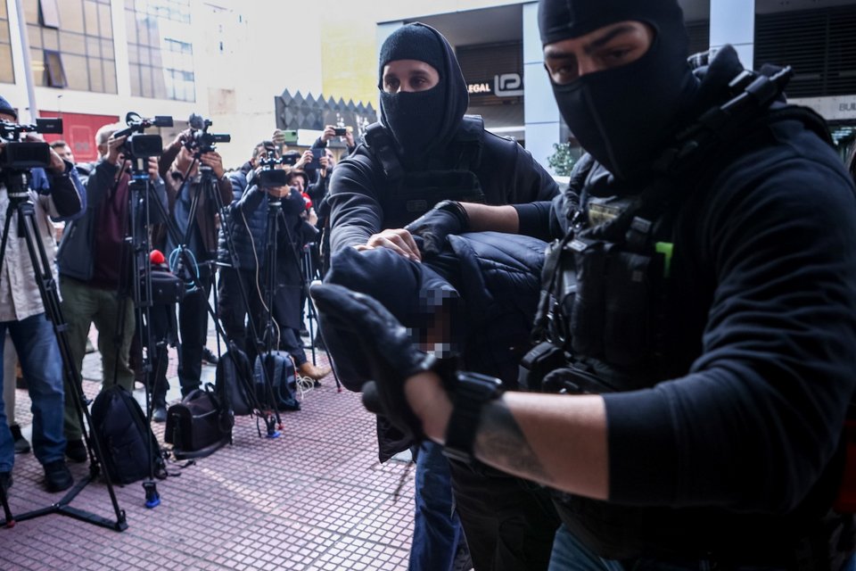 O 18χρονος οδηγήθηκε στην εισαγγελία Πειραιά αμίλητος και με σκυμμένο κεφάλι, κάτω από δρακόντεια μέτρα ασφαλείας.